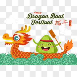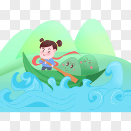 手绘拟人卡通粽子划龙舟免抠元素