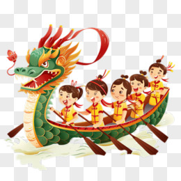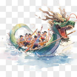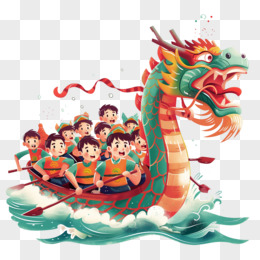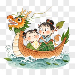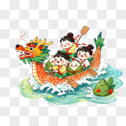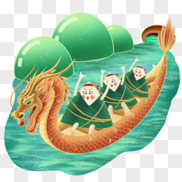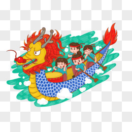 手绘粽子赛龙舟免抠元素
