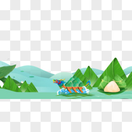 手绘粽子划龙舟场景元素