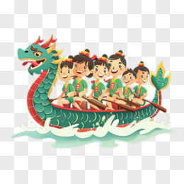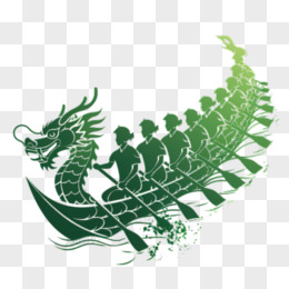 端午节传统活动赛龙舟绿色渐变剪影免抠元素