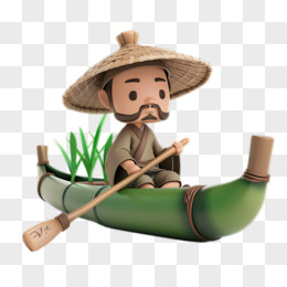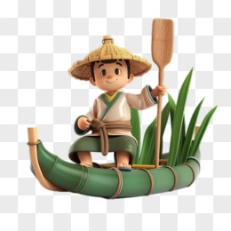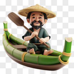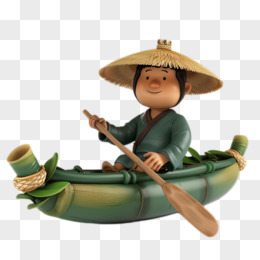 卡通3D船夫划木舟免抠元素