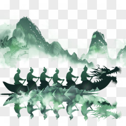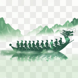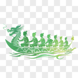 端午节传统活动赛龙舟绿色渐变剪影免抠元素