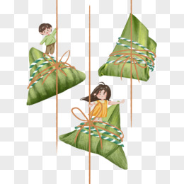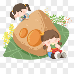手绘卡通妈妈和女儿一起包粽子免抠素材
