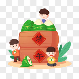 卡通手绘男孩包粽子场景元素