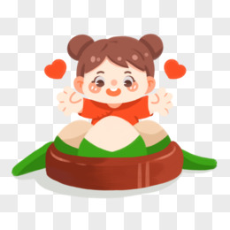 卡通手绘小女孩吃粽子免抠元素