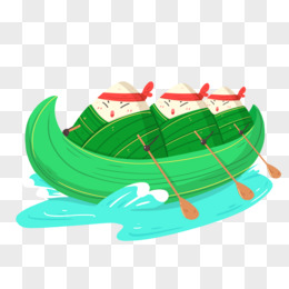 手绘插画拟人粽子划船素材