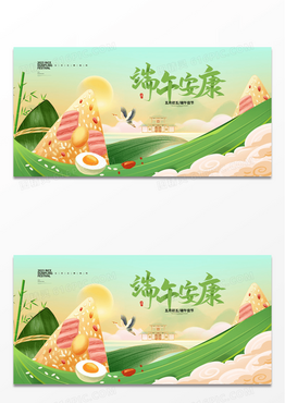 端午卡通可爱手绘绿色粽子赛龙舟素材