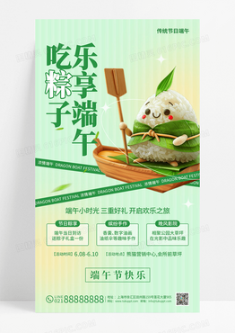 绿色3D端午节活动宣传端午节端午手机文案海报