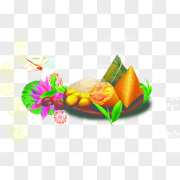 卡通手绘小女孩吃红豆蛋黄粽素材