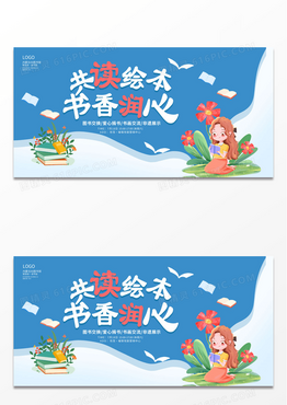 蓝色世界读书日读书分享会共读绘本读书活动展板设计