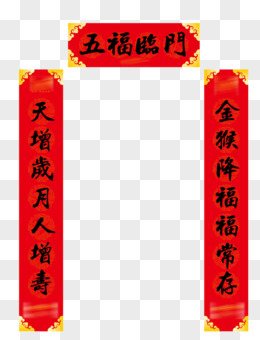 新年中国年装饰春节装饰元宝花朵对联门画实拍免抠图