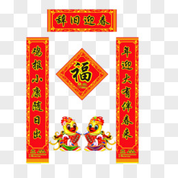 新年中国年装饰春节装饰元宝花朵对联门画实拍免抠图