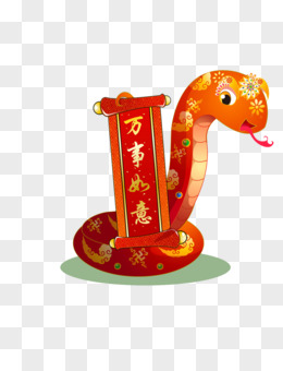 卡通新年金色蛇和红色对联免抠元素