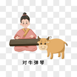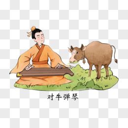 一组卡通手绘成语故事套图之对牛弹琴免抠元素