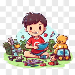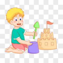 卡通手绘小孩玩沙免抠元素