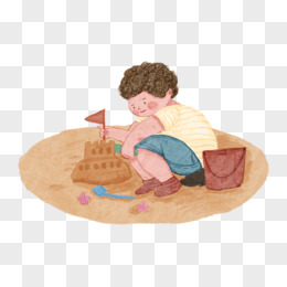手绘小小男孩玩沙子素材