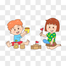 手绘卡通小朋友们玩沙素材