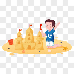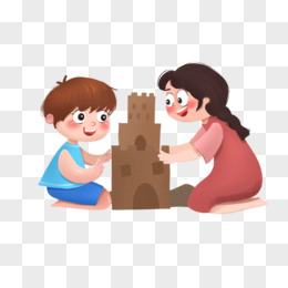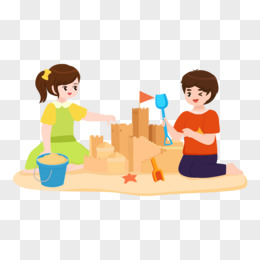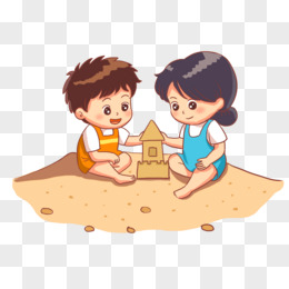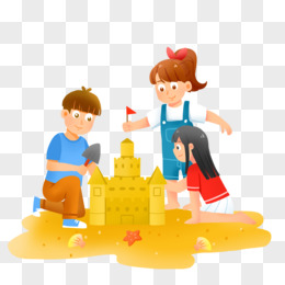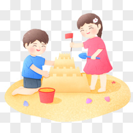 手绘卡通小伙伴一起沙堆沙堡免抠素材