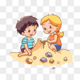 手绘卡通小伙伴玩沙免抠元素