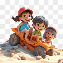 3D小伙伴沙滩车儿童夏日游戏元素