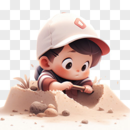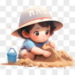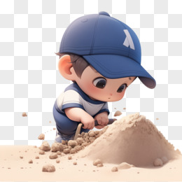 3D可爱挖沙堆沙玩沙子小朋友元素