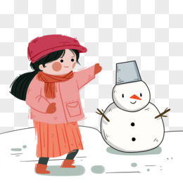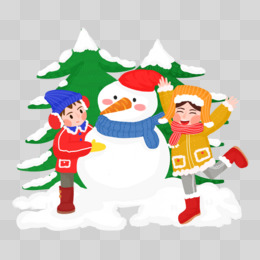 手绘卡通儿童堆雪人合集免抠系列三元素