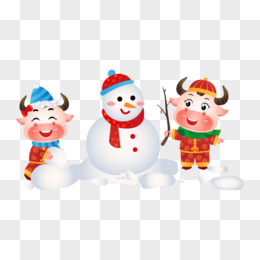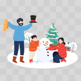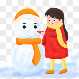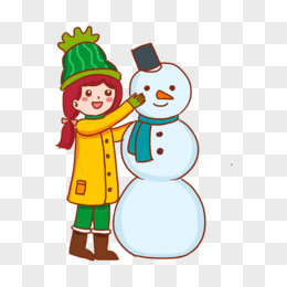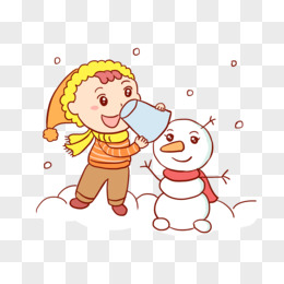 手绘卡通儿童堆雪人合集免抠系列四元素