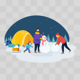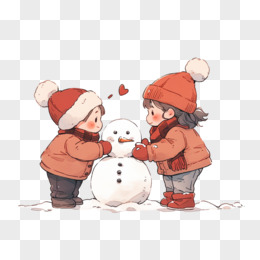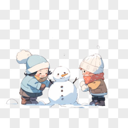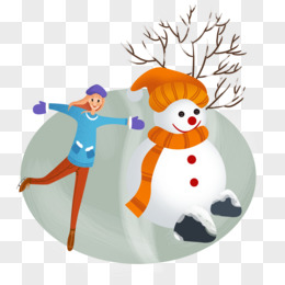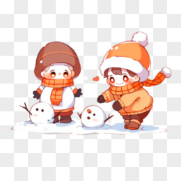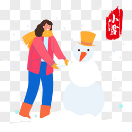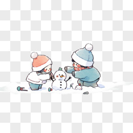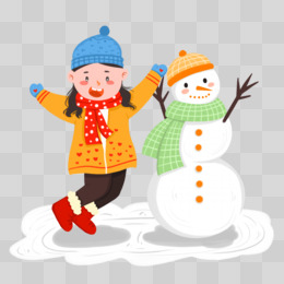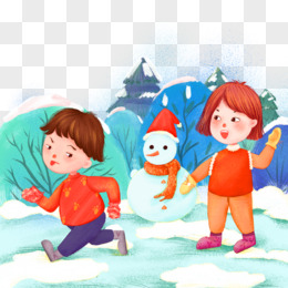 卡通手绘冬天女孩堆雪人打雪仗元素