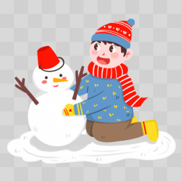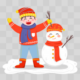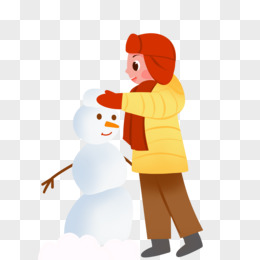 手绘卡通男孩子开心在雪地里堆雪人元素