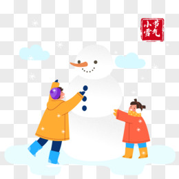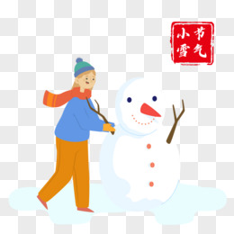 手绘卡通二十四节气小雪小孩堆雪人素材