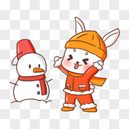 卡通手绘可爱不同月份兔兔场景系列之十二月堆雪人元素