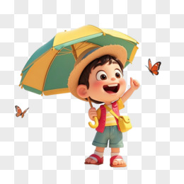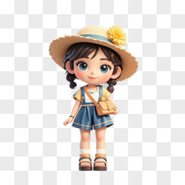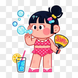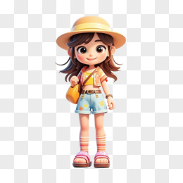 卡通手绘夏天度假出游的小女孩免抠素材