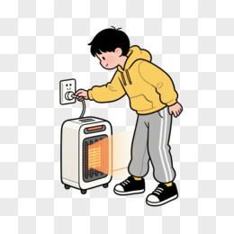 卡通小男孩关闭电暖器免抠元素