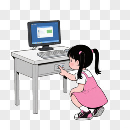 卡通小女孩关掉电脑免抠元素