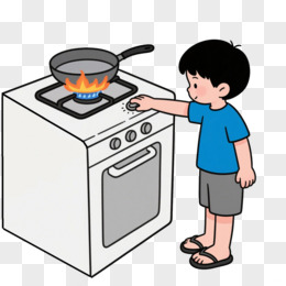 卡通小男孩关掉燃气免抠元素