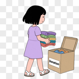 卡通小女孩将旧衣服放进捐赠箱免抠元素