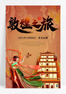 手绘国潮插画风敦煌仙女反弹琵琶元素