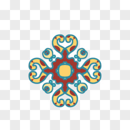 手绘国潮多彩花纹免抠装饰素材