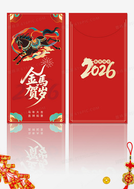 大气红色手绘敦煌马年金马贺岁2026新年红包