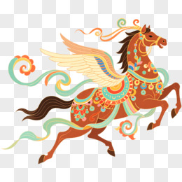 敦煌风有翅膀的神兽马免抠元素