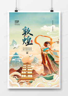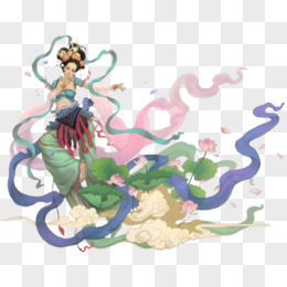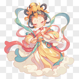 手绘物质文化遗产建筑之莫高窟飞天免抠素材