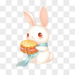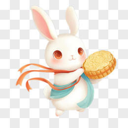 敦煌风可爱兔子抱着月饼中秋节创意元素