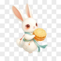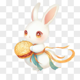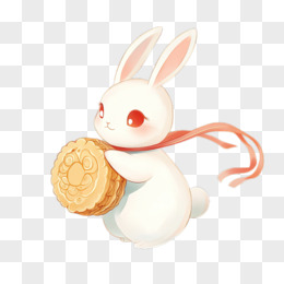 敦煌风可爱兔子抱着月饼中秋节创意元素