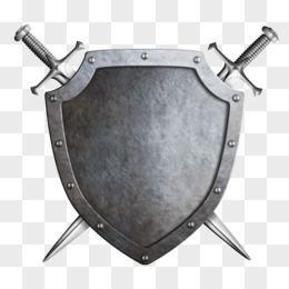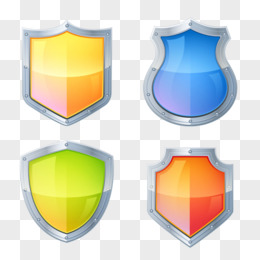 3D卡通带锁孔的蓝色盾牌和金币钱袋免抠元素