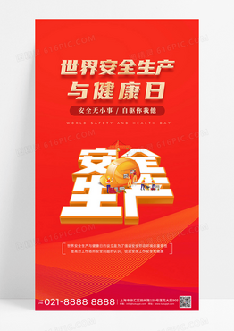 红色金色创意大气卡通2024世界安全生产与健康日手机海报模板