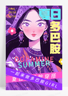 紫色插画夏日多巴胺风多巴胺女孩宣传海报