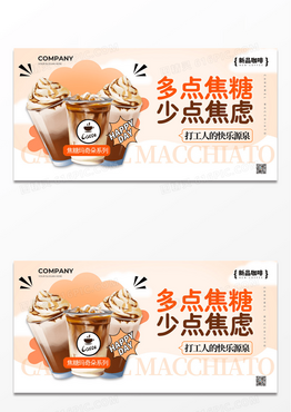 渐变实拍结合风焦糖玛奇朵多点焦糖少点焦虑咖啡宣传上新展板