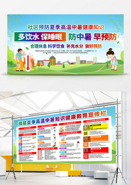 简约绿色多喝水保睡眠防中暑早预防夏天防暑展板