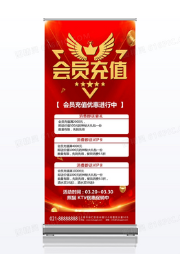 红色大气简约会员充值多充多送会员展架易拉宝