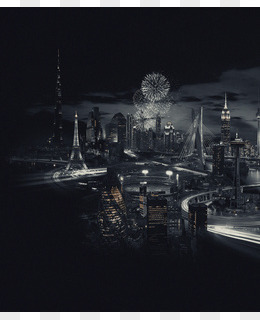 繁华都市夜景黑白风格的